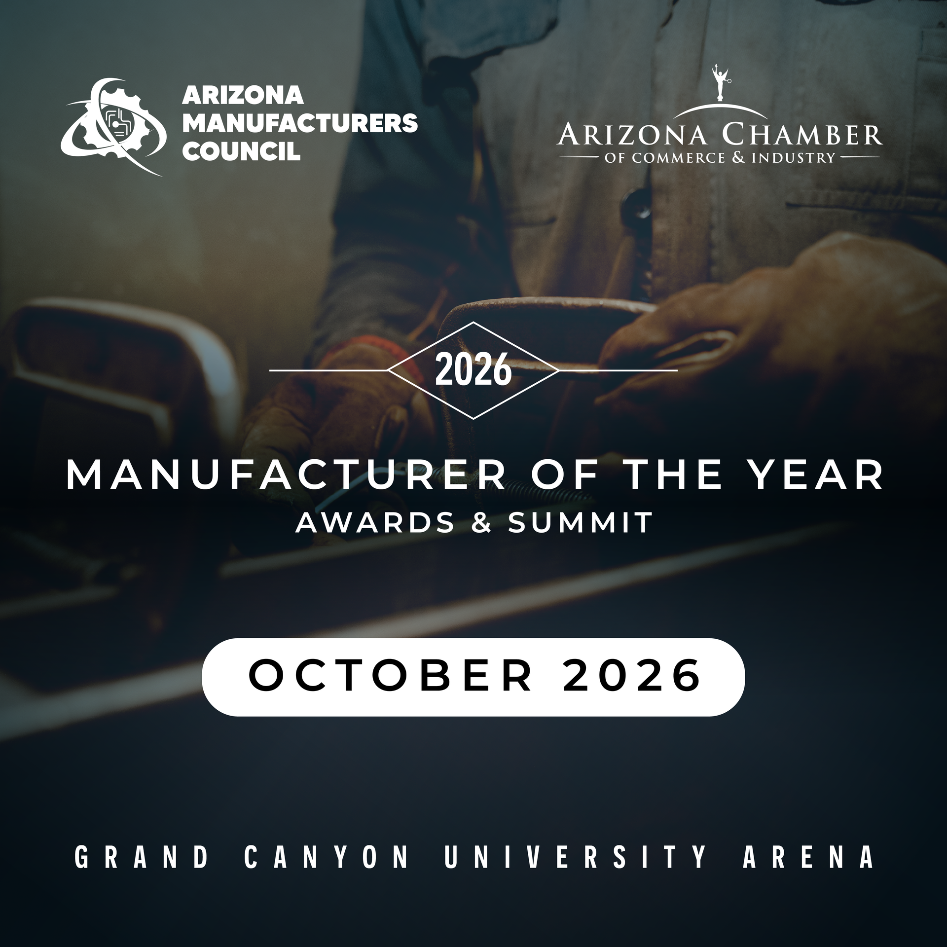 Join us for our 2026 Manufacturer of the Year Awards Luncheon! Our awards luncheon recognizes dynamic leaders from Arizona's manufacturing community with the following awards:
